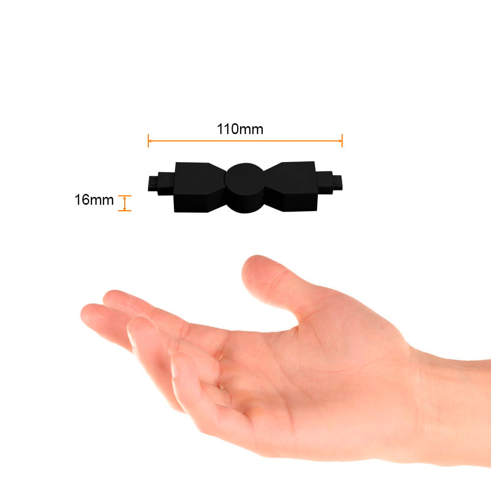 El Kit de 11 Conectores Flexibles Laterales de Tecnolite es un accesorio dise?ado para la union y adaptacion de tramos de canaleta LED en curvas y contornos. Permite una curvatura lateral de hasta 240 grados. Este conector en color negro es ideal para instalaciones que buscan un acabado uniforme en sistemas de canaleta negra, permitiendo un diseno de iluminacion continuo que se adapta a elementos arquitectonicos curvos.