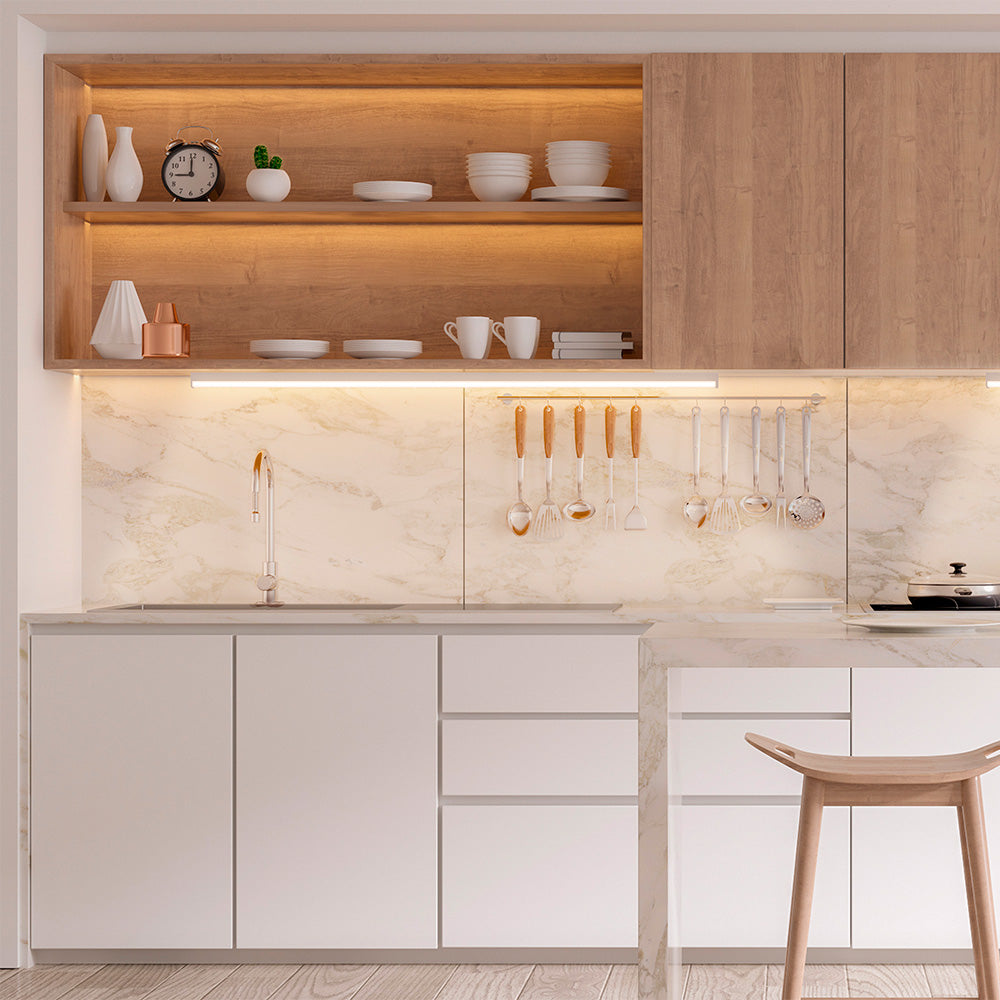 El Kit de 11 Regletas LED Tojil I de Tecnolite es una lampara lineal interconectable de 1.17 metros de longitud. Cada regleta de 18W proporciona un alto flujo luminoso de 1800 lumenes de luz calida brillante (3000K). Son ideales para instalar bajo gabinetes de cocina o en lineas continuas de iluminacion en tiendas. Permiten interconectar varias lamparas en serie (hasta 6 en este modelo de 18W) con una sola fuente de energia. No son atenuables.