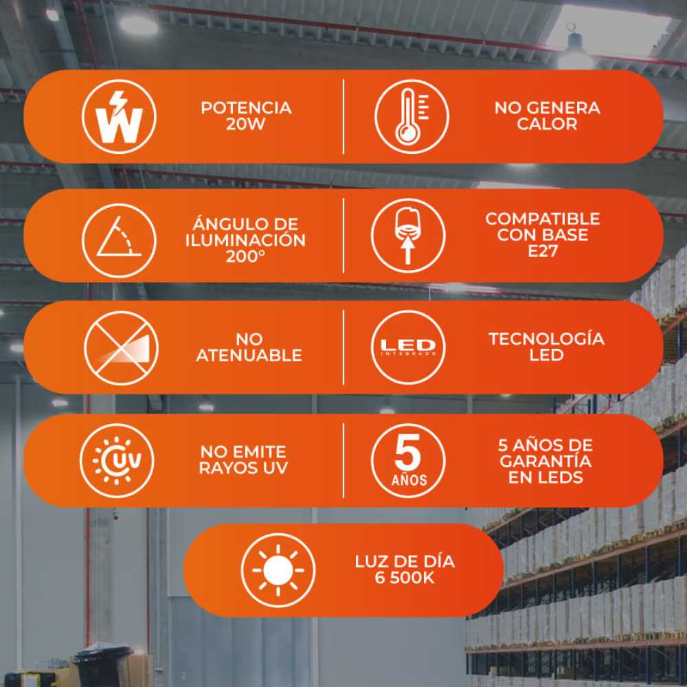 Kit de 19 Focos LED Alta Potencia 20W Luz de Dia E27 K20LHBLEDT65MV200