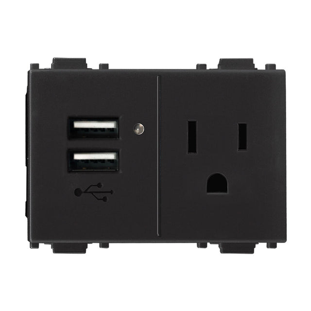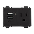 KIT DE 2 CONTACTOS DUPLEX 2 POLOS CON TIERRA Y 2 CONTACTOS USB 3 MODULOS EN COLOR NEGRO LINEA ALPHA ESTEVEZ