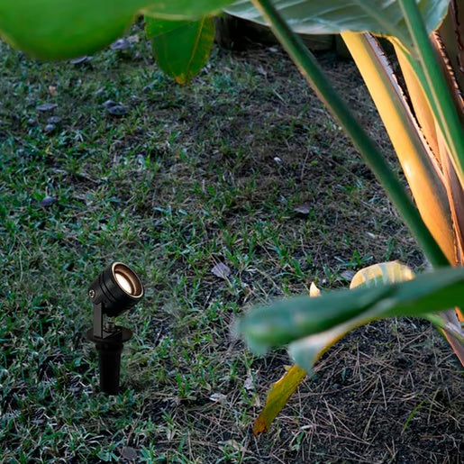 El Kit de 2 Lamparas LED con Estaca para Jardin de Tecnolite es un luminario de acento de bajo voltaje (24V). Cada luminario de 3W proporciona luz calida (3000K), ideal para iluminar plantas, arbustos o senderos. Es totalmente dirigible y cuenta con proteccion IP65, asegurando resistencia total al polvo y chorros de agua. Su operacion a 24V lo hace seguro para su uso en exteriores, requiriendo un transformador (no incluido).