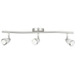 El Kit de 2 spots dirigibles Bejar II de Tecnolite es un luminario de sobreponer en techo con tres bases GU10 para foco (no incluidos), con potencia maxima de 50W por foco. Sus cabezales dirigibles permiten enfocar la luz en puntos especificos, ideal para iluminacion de acento en cuadros, objetos o areas funcionales de salas y cocinas. Fabricado en acabado satinado, ofrece un diseno moderno y adaptable a diferentes estilos de decoracion.