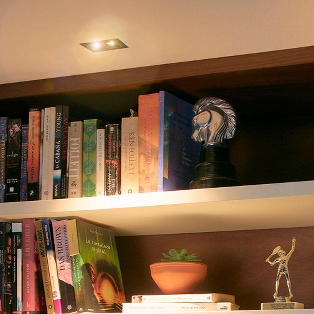 El Kit de 2 lamparas empotrables Lucida II de Tecnolite es un luminario de interior para falso plafon con LED integrado de 6W, ofreciendo luz suave calida (3000K). Su diseno en color negro es ideal para techos oscuros o para crear un contraste moderno. Es dirigible, permitiendo enfocar la luz de acento. Su LED integrado garantiza un bajo consumo y una larga vida util, siendo una opcion eficiente y estetica para hogares y comercios.