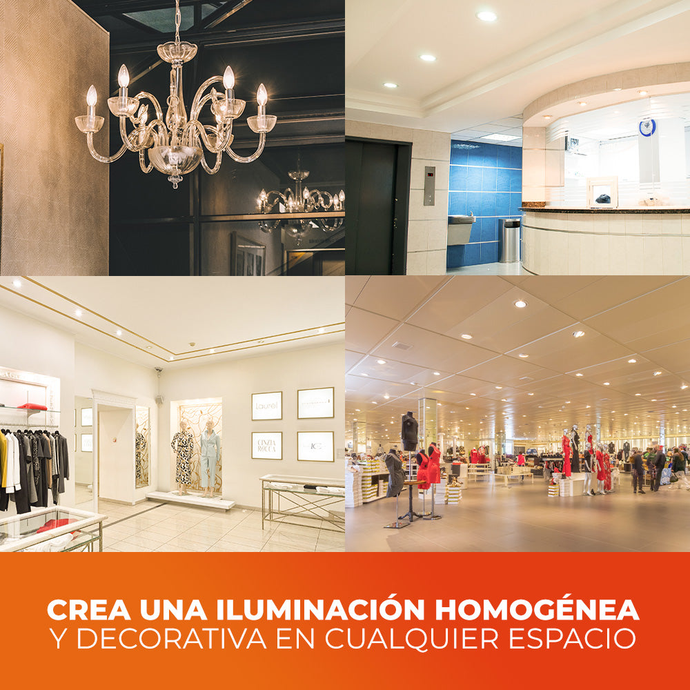 El Kit de 31 focos LED de filamento tipo vela C35 de Tecnolite es la opcion premium para iluminacion decorativa. Cada foco de 4.5W ofrece una excelente luz calida (3000K) con un muy alto Indice de Reproduccion Cromatica (IRC) de 90, lo que garantiza colores mas vivos y fieles. Son totalmente atenuables y cuentan con acabado aperlado. Utilizan base E27, ideales para candiles y luminarios decorativos en areas donde la calidad de la luz es primordial.