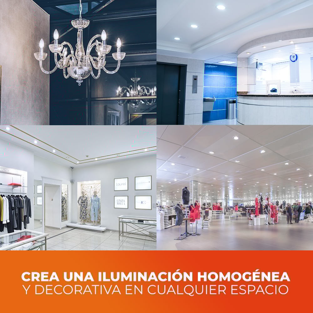 El Kit de 33 Focos LED de filamento tipo vela de Tecnolite de 4.5W ofrece una luz de dia (6500K) con un Indice de Reproduccion Cromatica (IRC) superior de 90. Este alto IRC garantiza la mayor fidelidad de los colores bajo luz fria, lo cual es esencial para exhibiciones o areas de trabajo detallado. Utiliza base E27, combinando un alto rendimiento visual con la estetica moderna del filamento, siendo una opcion premium de gran volumen.