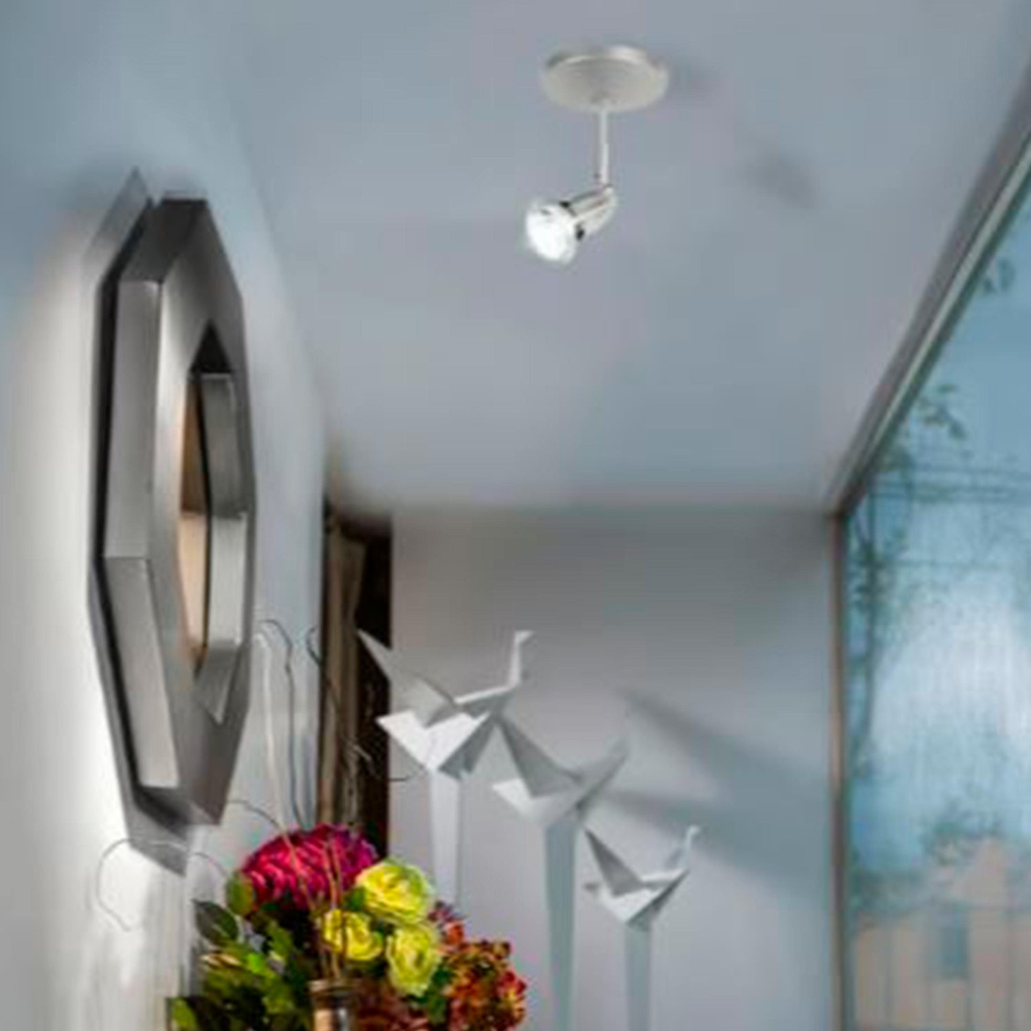 El Kit de 4 luminarios Baveno de Tecnolite es un **spot de sobreponer dirigible** para interiores. Su diseno compacto y minimalista, en aleacion de zinc con terminado **satinado**, es perfecto para iluminacion de acento o general en salas, pasillos y exhibiciones. Utiliza 1 foco con **base GU10** (no incluido) con una potencia maxima de **50W**. Es compatible con focos atenuables y dimmers, ofreciendo versatilidad en el diseno de iluminacion.