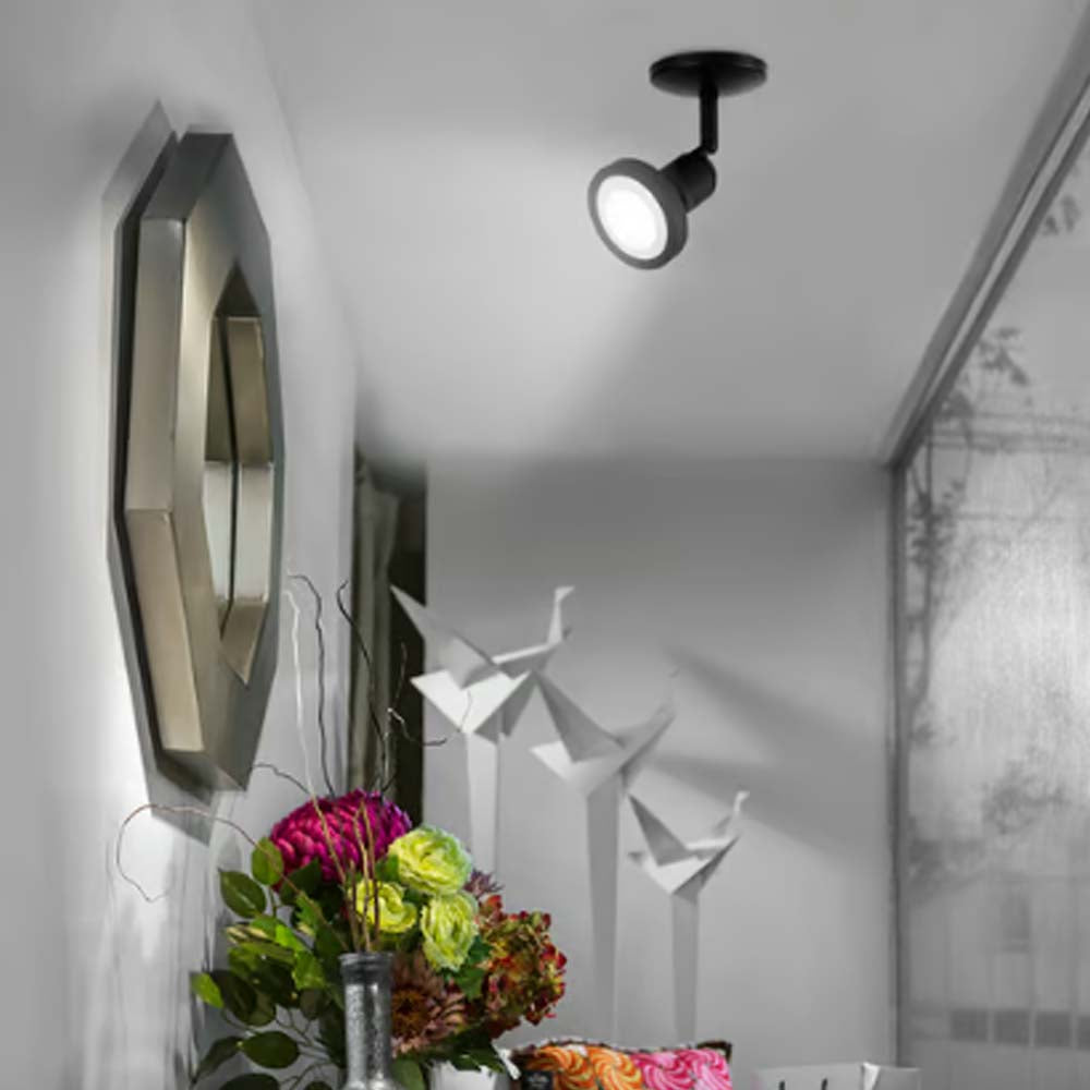 El Kit de 4 spots para sobreponer de Tecnolite es un luminario de interior versatil y moderno. Utiliza base E27 para foco (no incluido), lo que permite elegir la temperatura de color y la potencia deseada. Su diseno dirigible es ideal para iluminacion de acento en salas, pasillos o locales comerciales, destacando objetos o areas especificas. Fabricado en aluminio con acabado negro, es multivoltaje (100V-240V) y de facil instalacion.