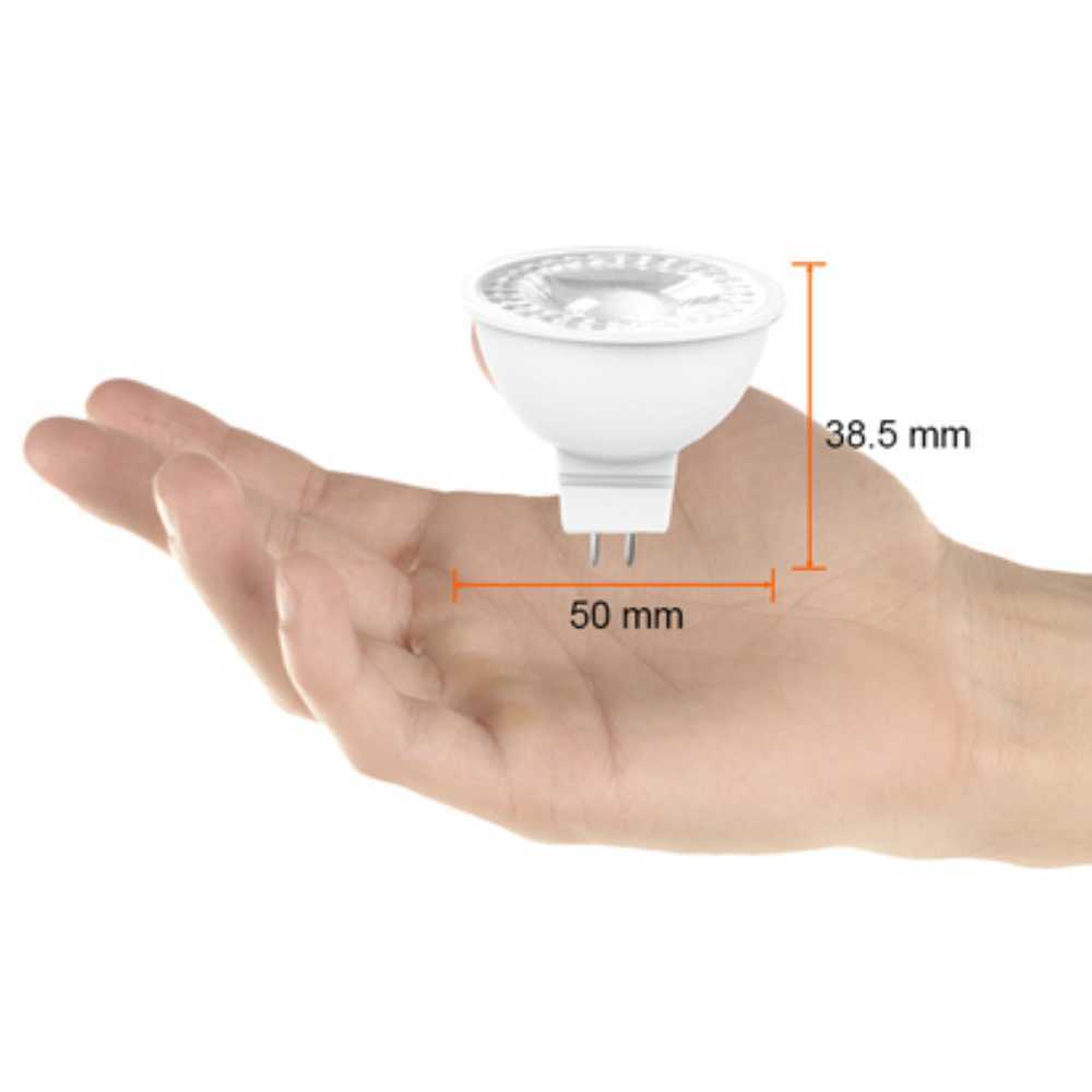 Este paquete incluye 5 focos LED de alto rendimiento tipo MR16, modelo Radium I de Tecnolite. Consumen 7W y emiten una potente y acogedora luz suave calida. Son atenuables, permitiendo ajustar la intensidad para crear diferentes ambientes. Operan a 12V con base GX5.3 y requieren un transformador y dimmer compatibles.
