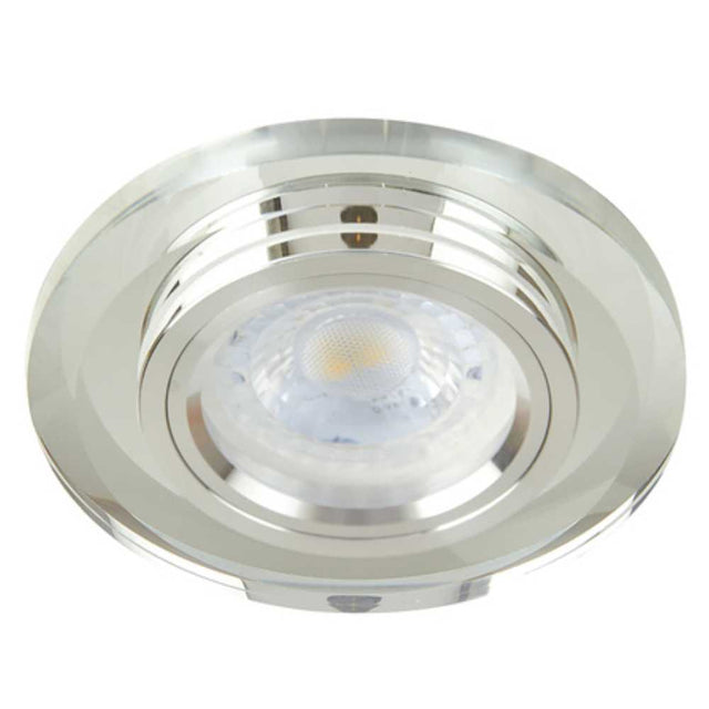 El Kit de 6 luminarios Enif de Tecnolite es un spot empotrable con un diseno de bisel minimalista y acabado cromado. Es ideal para banos, cocinas y areas de interior donde se busca un look limpio y brillante. Utiliza la base GX5.3 y soporta una potencia maxima de 50W con focos tipo MR16 (no incluidos). El luminario es fijo (no dirigible), lo que lo hace perfecto para iluminacion general y uniforme.