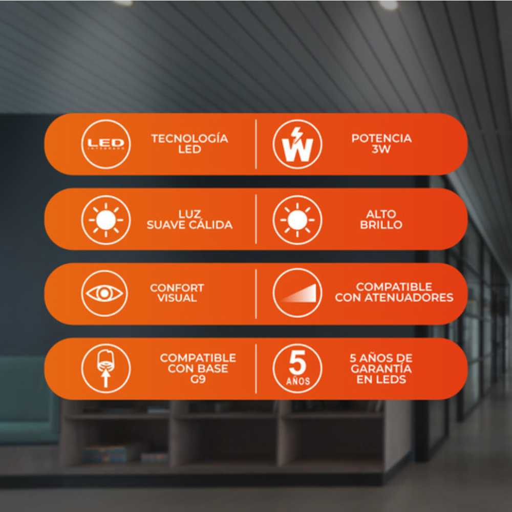 Kit de 7 Focos LED G9 Atenuables 3W Luz Suave Calida Tecnolite KG9DLED3W30