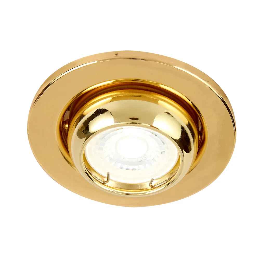 Paquete de 7 luminarios empotrables compactos modelo Acari de Tecnolite. Cuentan con un elegante acabado en color laton y estan diseñados para focos MR16 con base GX5.3 de hasta 50W (no incluidos). Son una excelente opcion para añadir un toque clasico y calido a la iluminacion de acento.