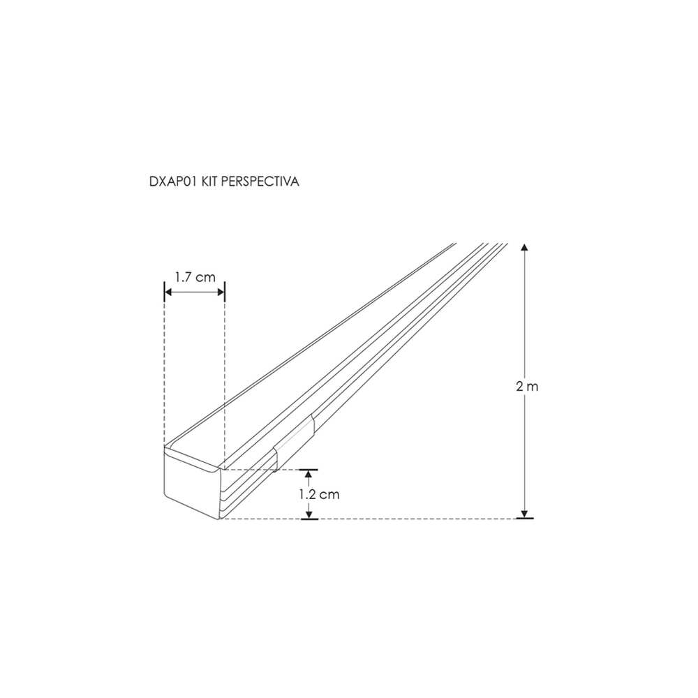 KIT PERFIL P/TIRA EXTRAPLANA LED C/CEJA (PERFIL RECT ALUMINIO 2M + MICA DIFUSA 2M + 2 TAPAS LAT + 2 GRAPAS DE EMP/SOB IP20) ILUMILEDS