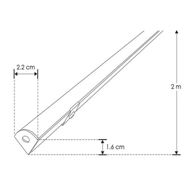 - Componentes: Perfil Esquinero 2m, Mica Difusa Curva 2m, 2 Tapas, 2 Grapas