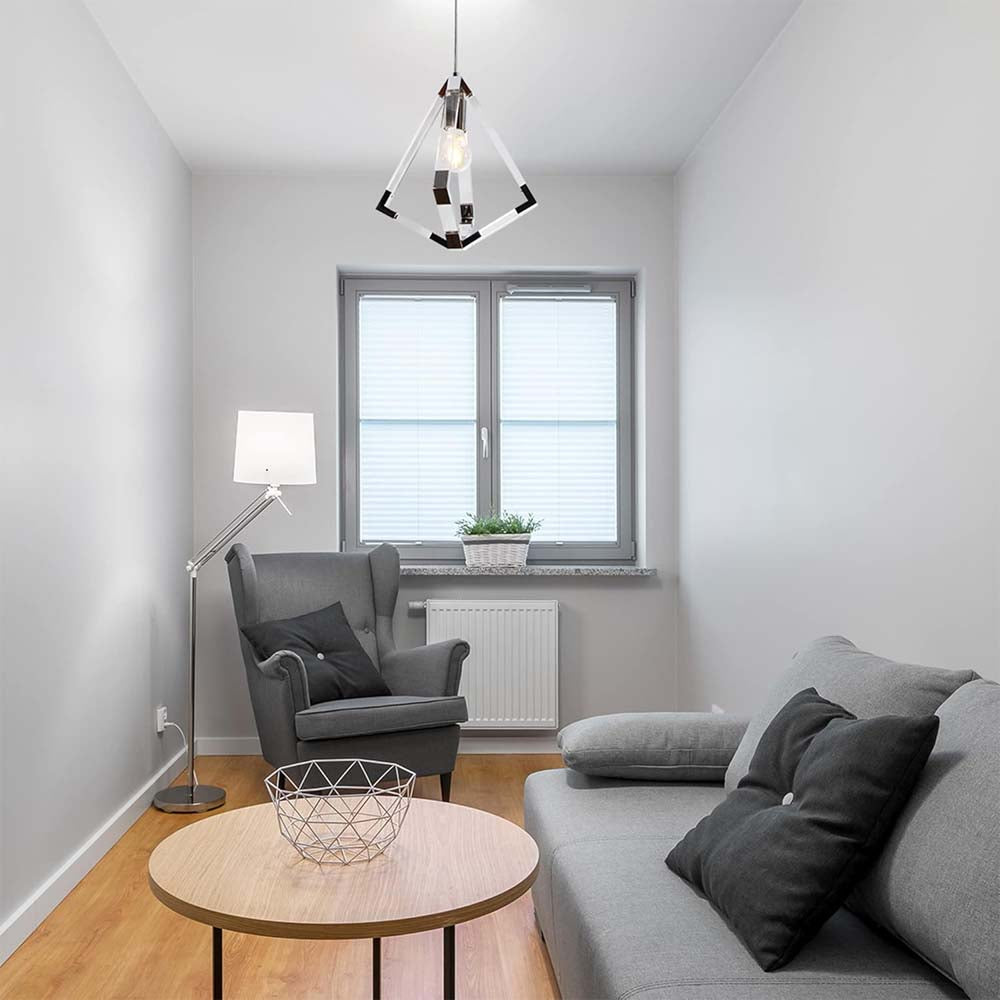 Elegante lampara colgante de techo 40W color cromo, diseño moderno y duradero con portalamparas E27. Ideal para interiores como sala o comedor. Aporta un toque sofisticado a tu espacio.