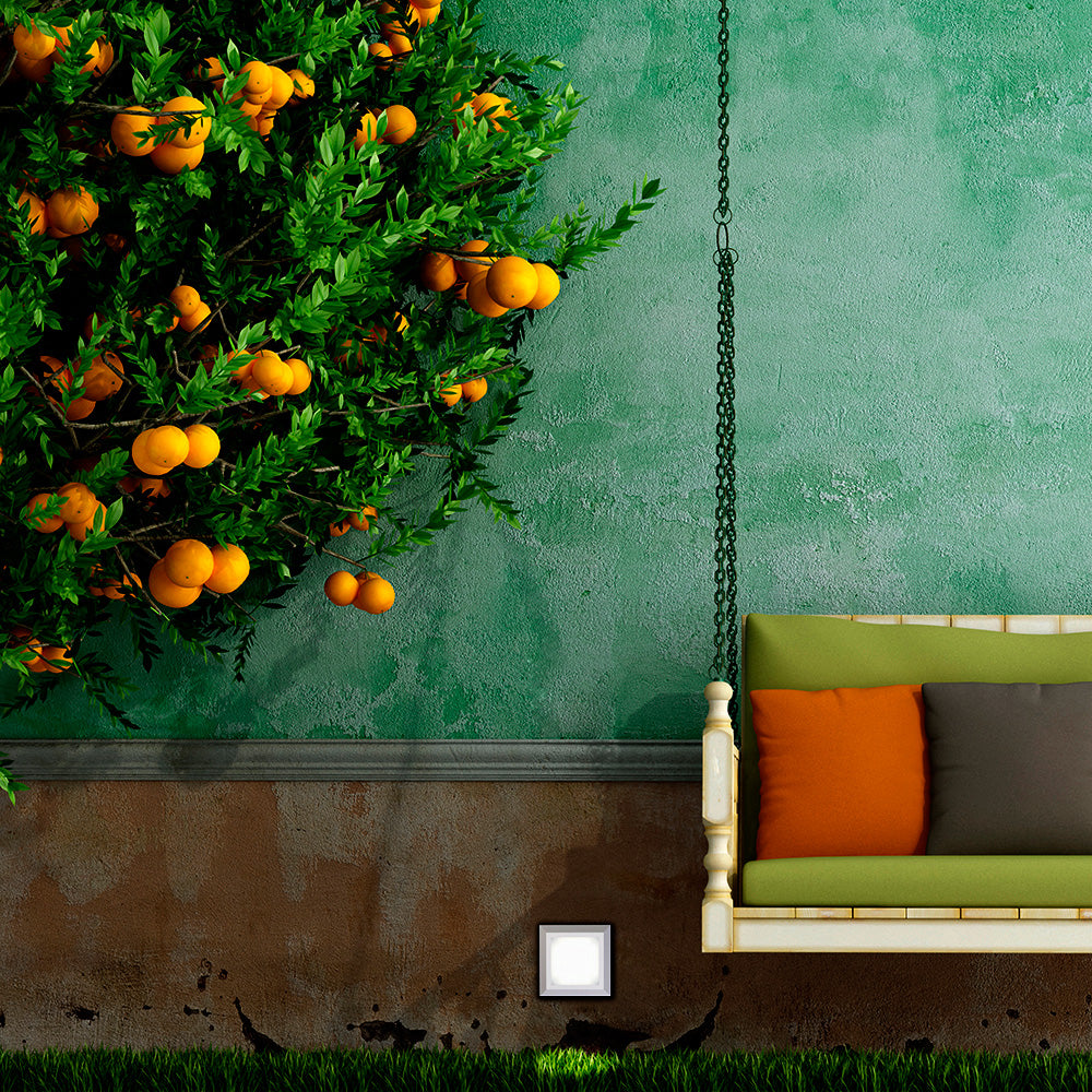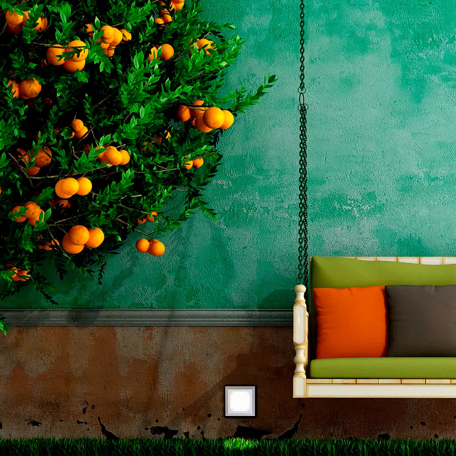 Lampara de exterior **Anshan III** tipo **sobreponer** con tecnologia **LED integrado de 2.5W** que ofrece **luz blanca neutra**. Similar al modelo en acabado gris, este es ideal para iluminacion de acento en muros o jardines. Su diseno compacto y resistente (IP54 estimado) la hace apta para condiciones exteriores. Este articulo es un **producto de exhibicion** y se conserva como referencia.
