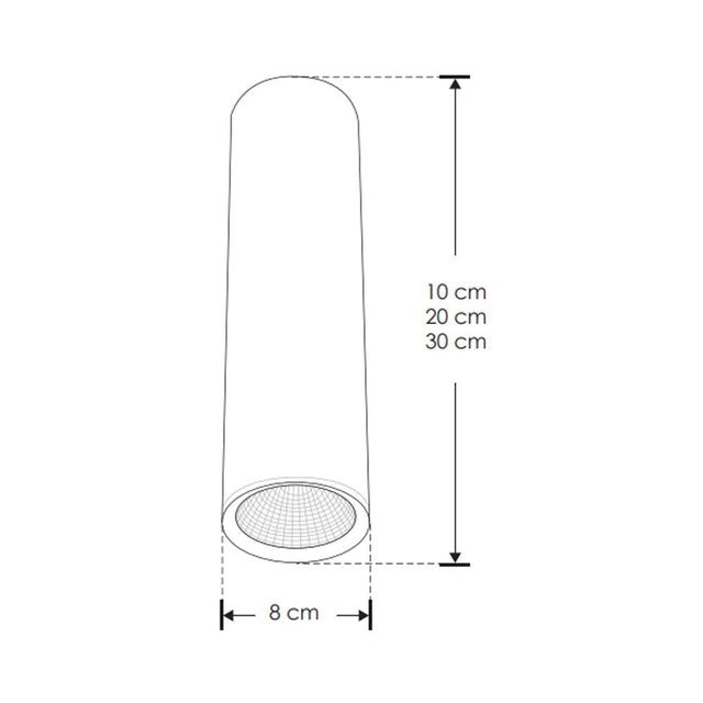 LUM.DE TECHO 30CM LED 10 WATSS 38 BLANCO CAL. CILINDRICO SOB. ALUM.ACAB.NEGRO 100-277V IP20 ILUMILEDS