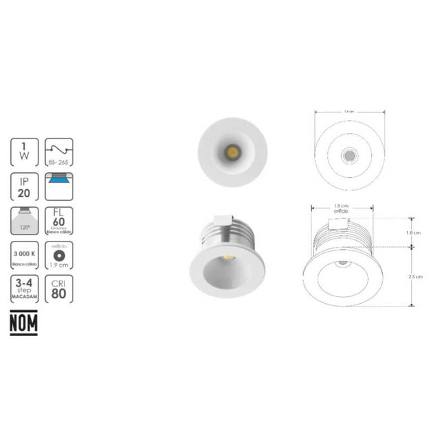 LUM.TECHO LED BCALIDO 1W 85-265V IP20 ILUMILEDS