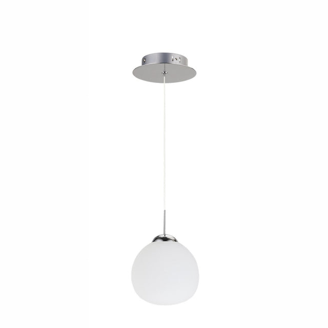 Luminario colgante de Tecnolite Home con diseno de esfera. La pantalla de 25 cm de diametro en acabado satinado alberga un LED integrado de 10W que proporciona una luz suave y difusa. Ideal para decoraciones modernas. Este es un producto de exhibicion, se conserva como referencia.