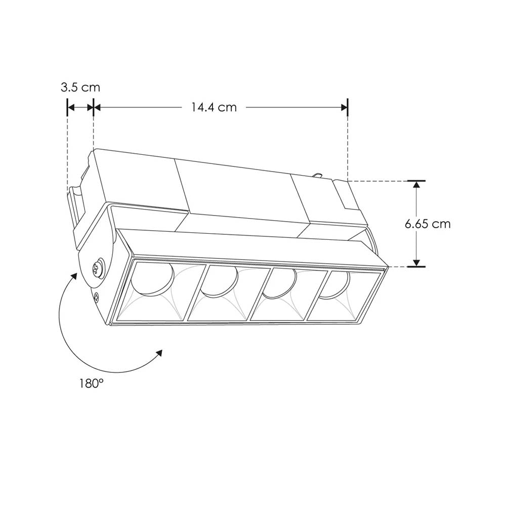 LUMINARIA PARA RIEL ELECTRIFICADO LED 3500K 10W OPTICA 36 DE SOBREPONER ALUMINIO ACABADO NEGRO 100-240V IP20