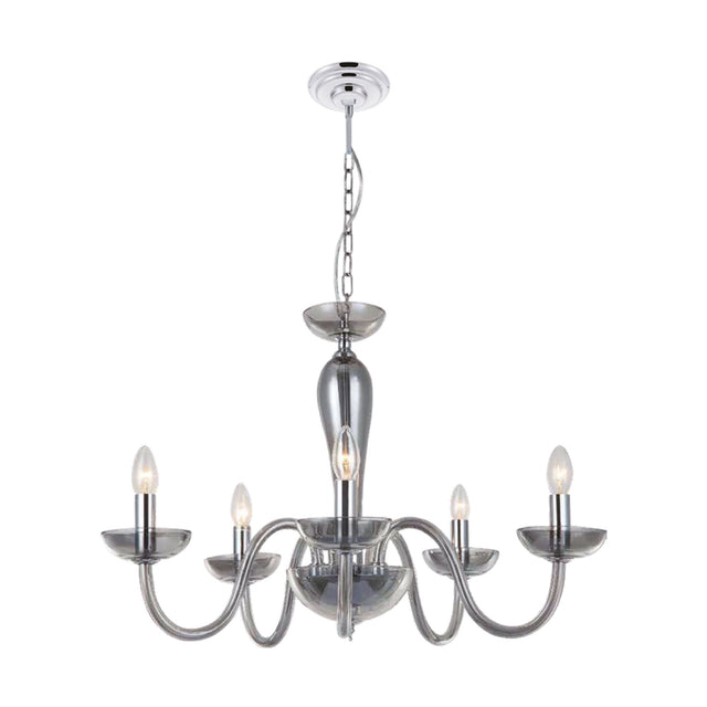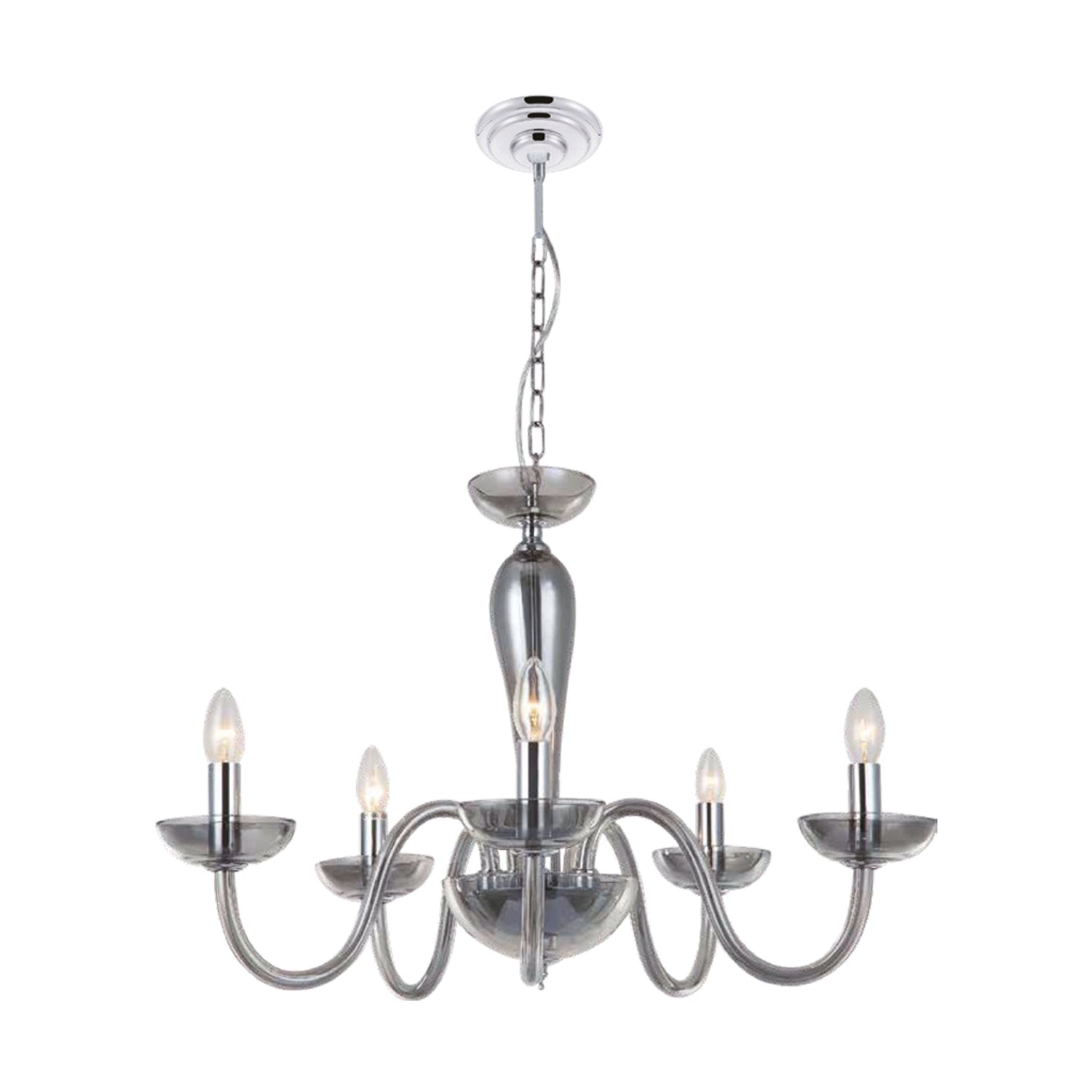 LUMINARIO COLG. 40W. 5 LUCES ACERO CROMO VIDRIO NEGRO TRANSP. E12 S/LAMP. 39117 FALCADO ***HAE 2024***