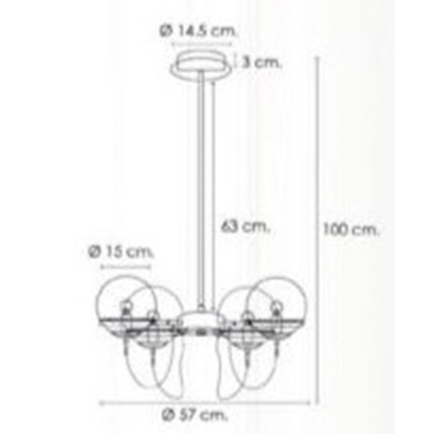 Luminario colgante decorativo con un diseno elegante de 4 esferas. Estructura de laton y difusores de vidrio en color dorado. Utiliza 4 focos base E26. **IMPORTANTE: EL PRODUCTO INCLUYE LOS FOCOS.** Ideal para un punto focal en salas, comedores o escaleras. **CLASS HASTA AGOTAR EXISTENCIAS (HAE)**