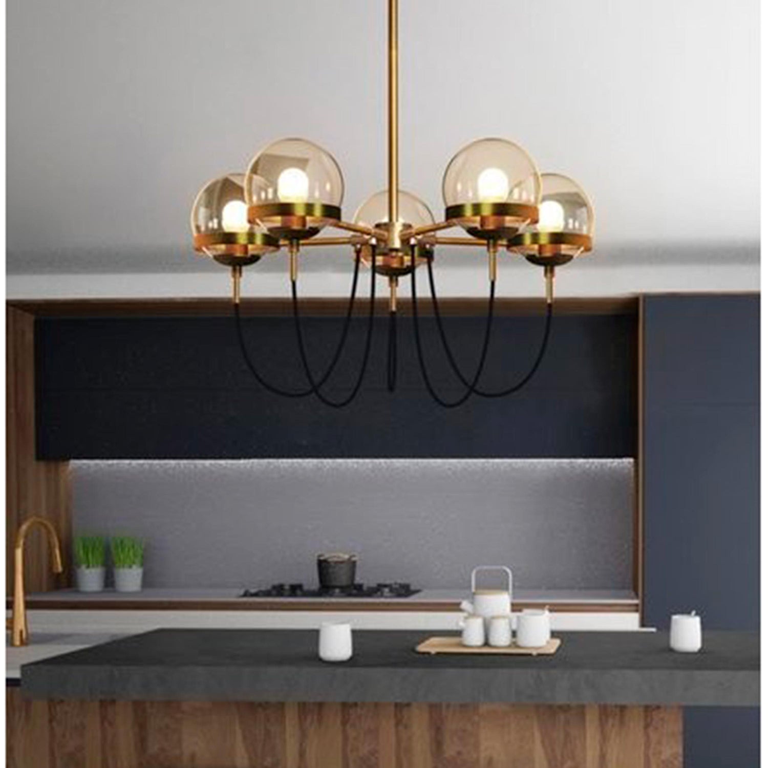 Luminario Colgante CLASS de 4 Esferas en Laton-Vidrio Dorado