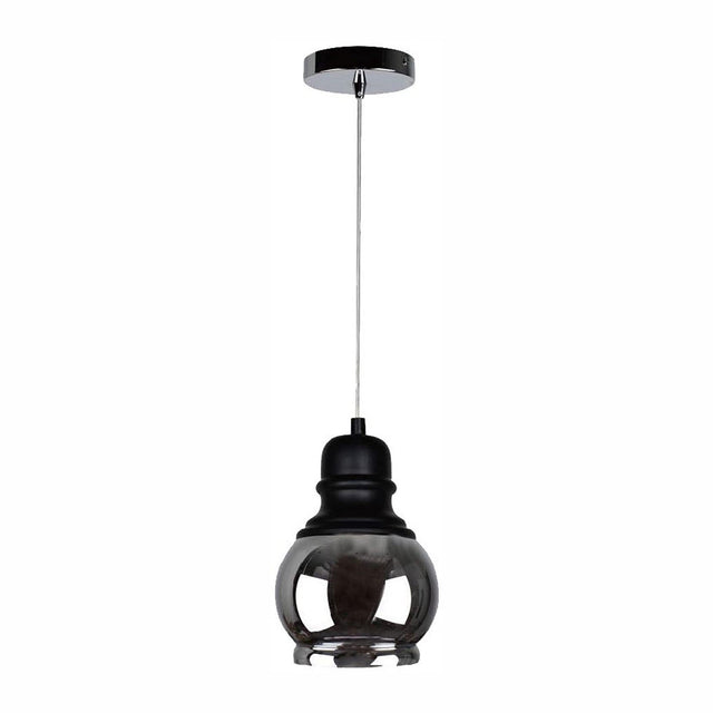 Luminario colgante de estilo vintage con estructura cromada y pantalla de cristal. Diseno elegante que combina elementos clasicos con toque contemporaneo. Acepta lampara E26 hasta 60W (no incluida). Ideal para crear ambientes sofisticados en comedores, salas o espacios comerciales. Cable ajustable para regular altura segun necesidad. Acabados de alta calidad en cromo brillante. Cristal transparente permite maxima transmision luminosa. Disponible con existencia en Nave 7.