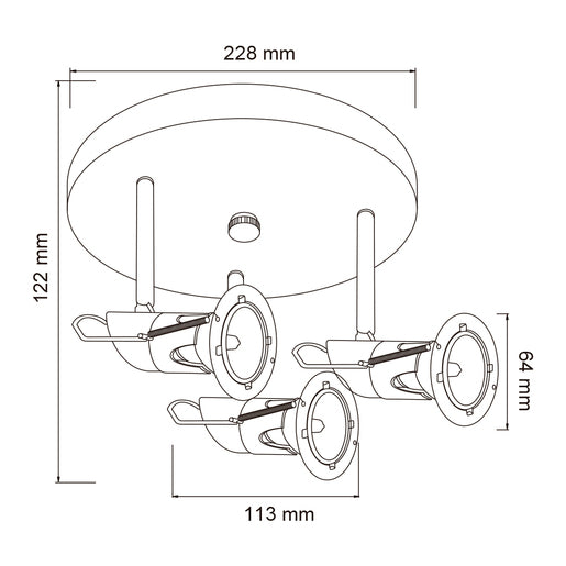 Luminario interior tipo spot o acento de sobreponer, con capacidad para 3 lamparas GU10 (focos no incluidos, potencia maxima de 18W por foco o total, consultar). Compatible con multivoltaje 100-240V. Ideal para iluminacion focalizada. Marca TECNOLITE. Articulo UNICO de EXHIBICION. *** EXHIBIDO ***.