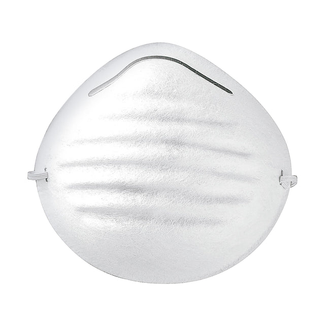 Mascarilla de proteccion respiratoria ligera y comoda, disenada para proteger contra polvos no toxicos generados en trabajos de lijado, limpieza o al barrer. Su forma de concha pre-moldeada, el clip nasal ajustable y la banda elastica aseguran un buen sellado y un ajuste comodo para el usuario durante periodos de uso prolongado.