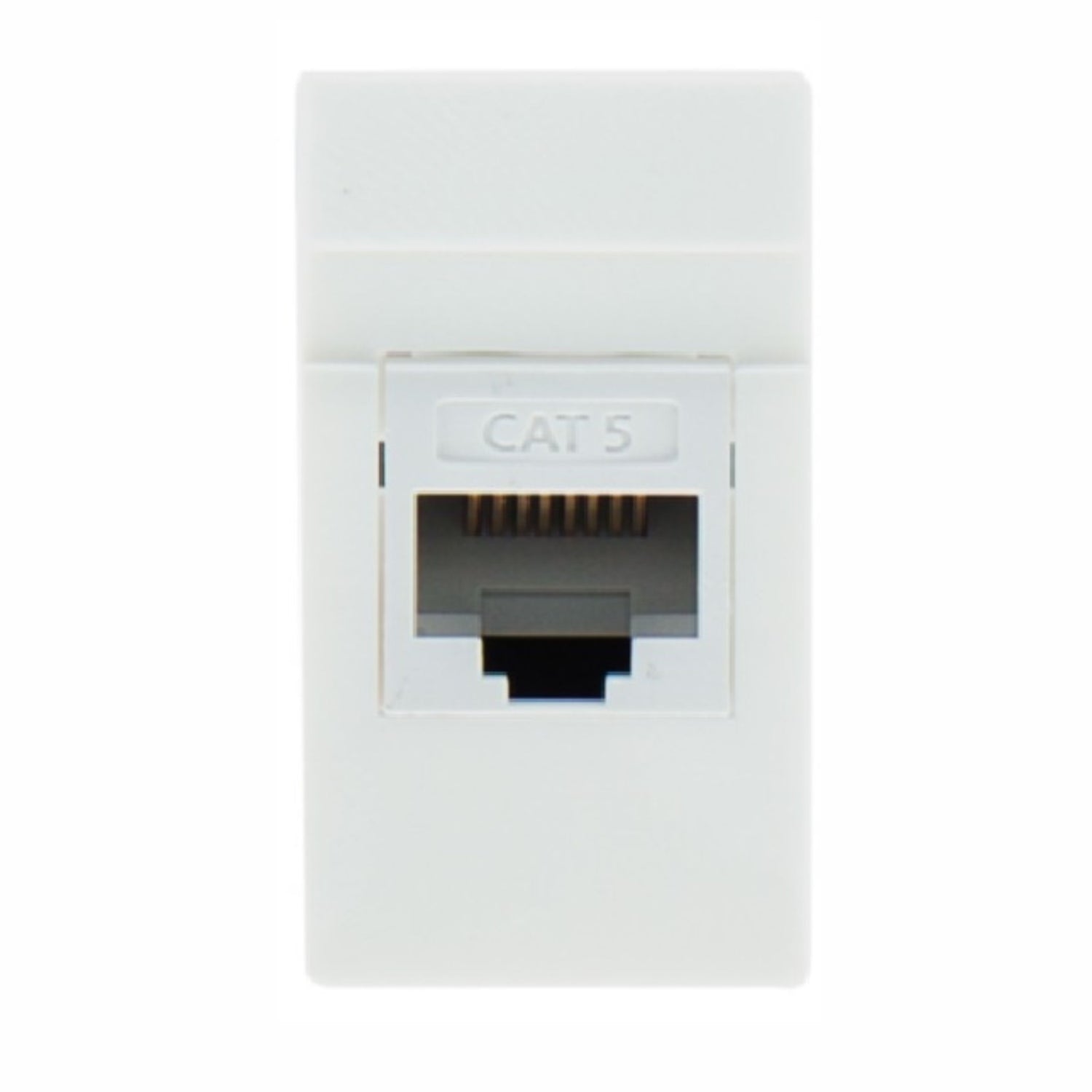 Este modulo de datos de la linea Cien de Leviton permite integrar una conexion de red (Ethernet) en una placa de multiples ventanas. Cuenta con un conector RJ45 de Categoria 5e y su color marfil es ideal para combinar con otros dispositivos de la misma serie en tonos calidos.
