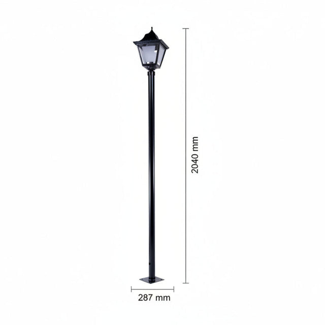 El poste tipo farol PE1700N de Calux es una solucion clasica y elegante para la iluminacion de exteriores. Fabricado en acero con acabado negro y con un indice de proteccion IP54, es resistente a la intemperie. Compatible con focos de base E27 de hasta 60W (no incluido), es ideal para iluminar caminos, jardines, patios y entradas, anadiendo seguridad y estilo.