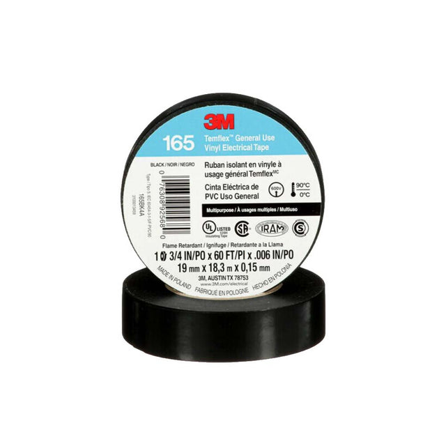 PAQUETE DE 20 CINTAS ELECTRICAS TEMFLEX 165 NEGRO 3M