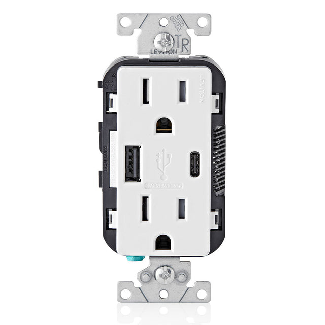 CONTACTO DUPLEX CON CARGADOR USB TIPO A Y C 15A. BLANCO LEVITON