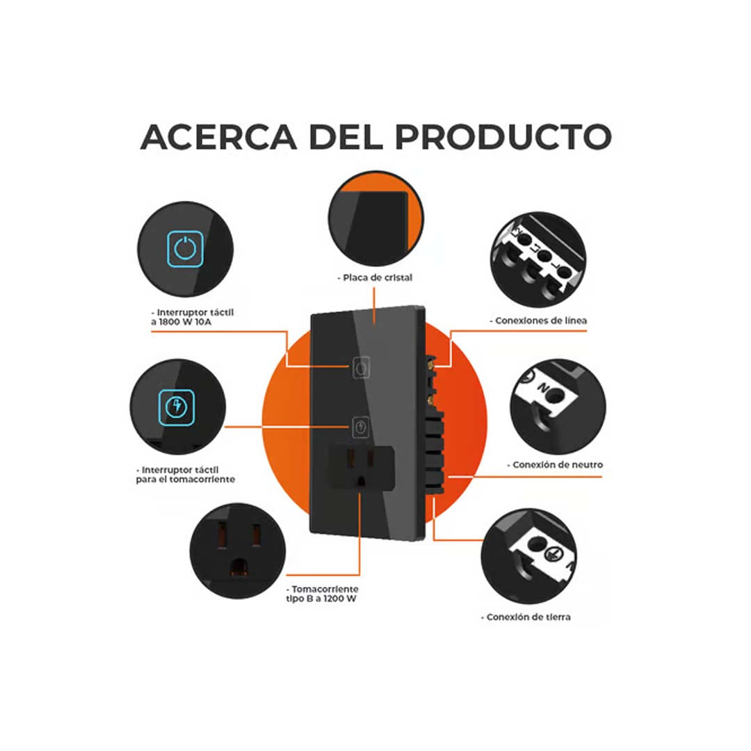Interruptor Inteligente 1 Boton y Enchufe 16A WiFi Negro Tecnolite Connect