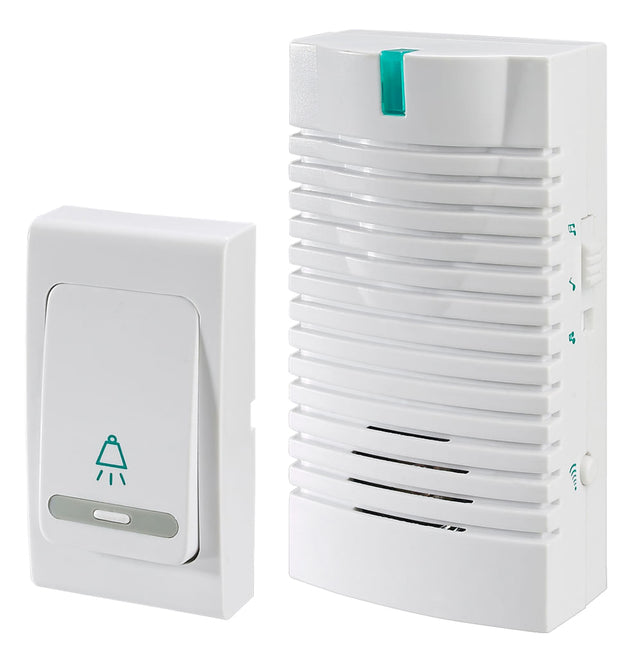 Timbre inalambrico de la linea ECONOMY de ESTEVEZ. Facil de instalar, no requiere cableado entre el boton y el receptor. Ofrece 3 melodias seleccionables. Ideal para residencias, oficinas o almacenes. **ESTE ARTICULO ES DE BAJA Y SE CONSERVA COMO REFERENCIA.**