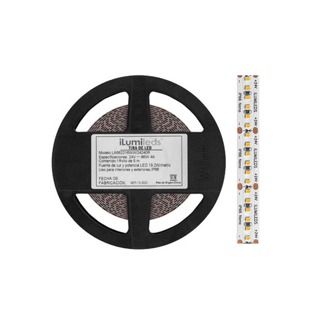 TIRA EXTRAPLANA LED 2216 5 MTS C/240 LEDS BLANCO CALIDO 24VCA 2200 K 19.2W OPTICA 120G ILUMILEDS