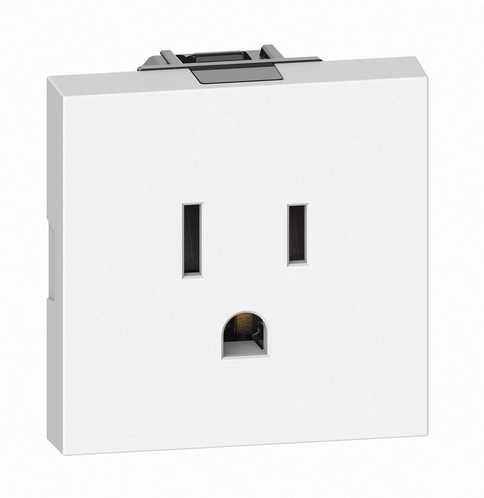 TOMACORRIENTE SENCILLA 2P+T CON PROTECCION INFANTIL COLOR BLANCO 2 MODULO 15A 127-277V MCA LIVING NOW